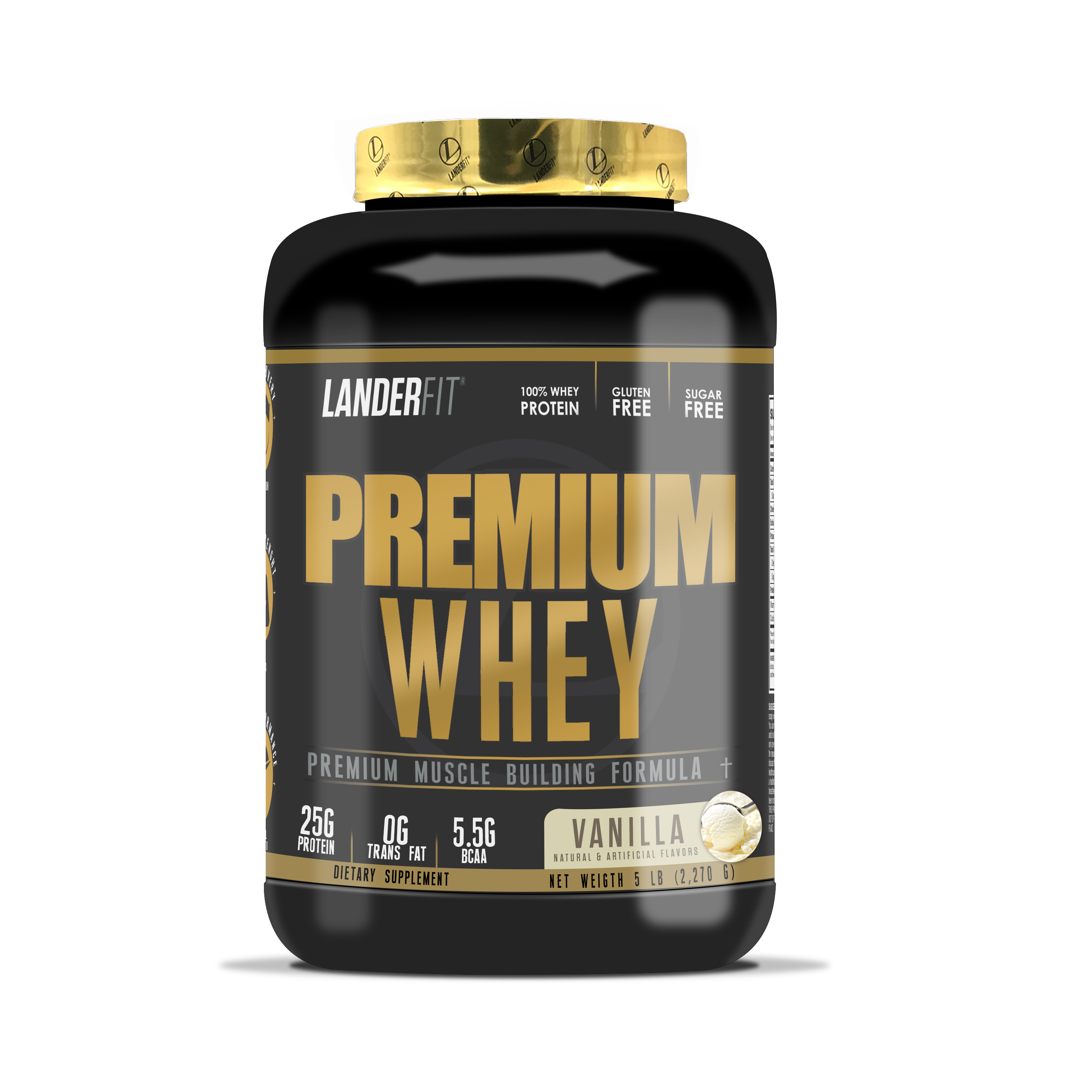 Suplemento proteico premium, 100% whey (suero de leche). Provee 25 g de proteina por servicio, incluyendo 5.5 g de BCAAs.